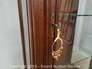 Lot #0017: Solid Wood & Glass Locking Curio Cabinet