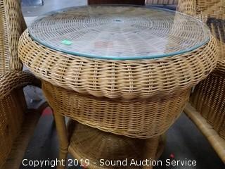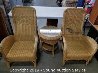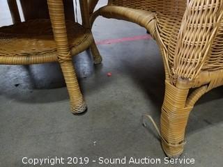 Lot #0013: Unique Wicker Woven Contour Chairs & Table Set