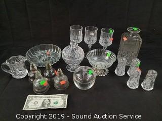 Item Description: Includes: Crystal S/P shakers, creamer, covered dish and more.