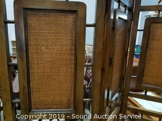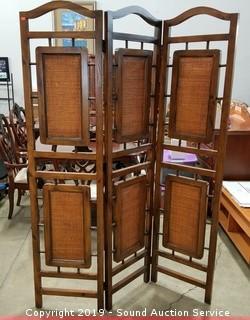 Lot #0005: Wood & Wicker 3-Panel Privacy Screen