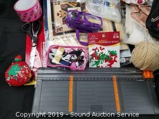 Item Description: Includes: Hot glue gun, stencils, quilting patterns, scissors, glue, batting, paper cutter, and more.