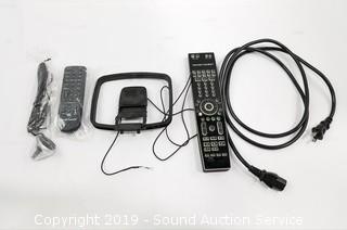 Comes with 2 remotes, antenna and instruction manual.