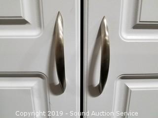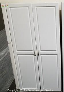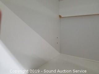 Adjustable doors and shelves. Excellent condition. 6ft T x 36" W x 19" D. Has a small chip on the inside (top left corner).