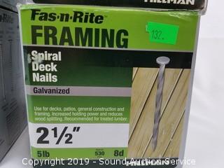Lot #0131: (2) 5lbs Boxes 2.5" Framing Spiral Deck Nails 8D