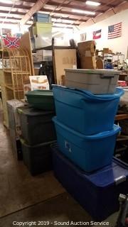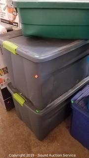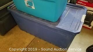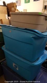 Item Description: All but one of the small Rubbermaid totes has a lid. One of the blue totes has a lid that doesn't fit. Approx. (5) 30 gallon and (2) 10 gallon. Approx. 18" x 17" x 30" and 8" x 14" x 20".