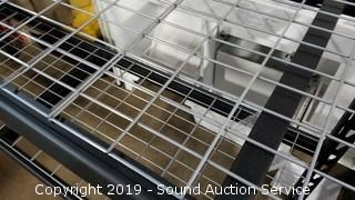 Item Description: Steel mesh deck, 4 shelves. Approx. 7ft H, 7ft L, 2ft D. Some of the posts are bent, still functional.