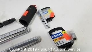 Item Description: You get a 8pc. 1/4" and 3/8" torx bit set T15-T50, Kobalt 3/4" 3/8" drive deep well socket, Craftsman ratchets, 1/4" 3" extension, broken 3/8" drive ratchet, and 1/4" to 3/8" drive adapter.