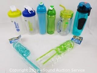 Item Description: You get Blender Bottles, flip top containers, jumbo curly straws, and insulated lunch bags.