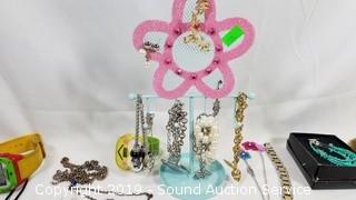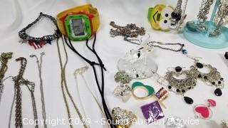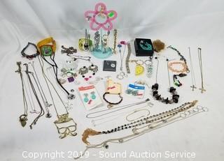 Lot #0159: Large Collection of Fashion Jewelry & Stand
