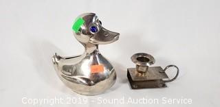 Item Description: Bud vases, candlestick holders, duck coin bank, dishes, and more.