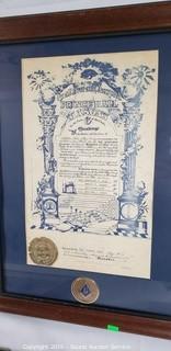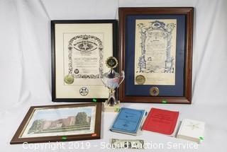 Item Description: Freemason trophy, Freemason charter certificate, Masonic Ritual book (From the Prince Hall Grand Lodge of Georgia), Order of the Eastern Star certificate and Dr. Wright Ritual book, Constitution and General Regulations book, SSG Hams Lodge photo signed, and more.