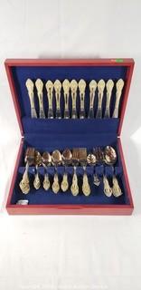 Item Description: Comes with chest. Just missing 1 knife, otherwise complete service for 12. Refer to photos for more information.