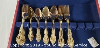 Lot #0321: Service for 11 Gold Tone Stainless Flatware