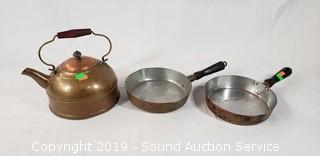 Lot #0329: Vtg. Revere Copper Tea Kettle & 7" Skillets