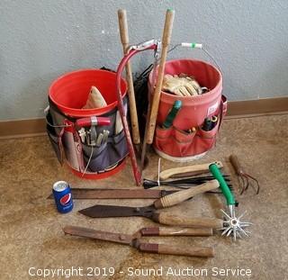 Lot #0073: (2) 5Gal Buckets w/Lawn & Garden Tools