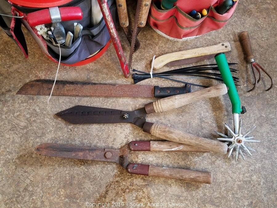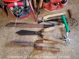 Item Description: Includes machete, loppers, bow saw, gloves, shovels, hand cultivator and more.
