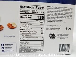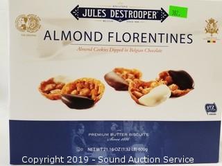 Item Description: Almond cookies dipped in Belgian chocolate. 21.6oz boxes. Factory sealed. Best by September 25, 2019.