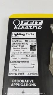 Lot #0389: 5pk Feit LED Dimmable 3.3w Chandelier Bulbs