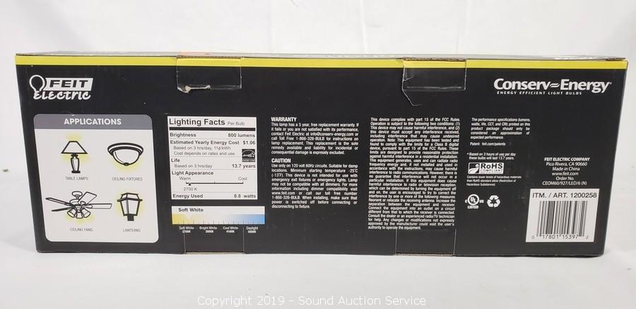Lot #0098: 6pk Feit LED Dimmable 8.8w Light Bulbs