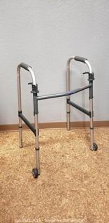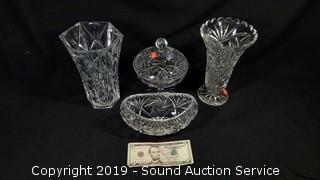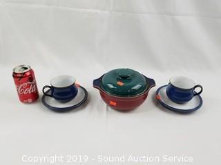 Item Description: Includes Set of 7 Dansk Plates & Bowls, Garden Hose, Couplers & Various Watering Hardware, Denby Stoneware Teacups, Saucer & Covered Dish, 14 Sherry Shot Glasses, Smithsonian Magazines & Geographical Atlas, Pair of 15" x 3/4" Granite Slabs, Crystal & Pressed Glass Vases & Covered Dish, Invacare Folding Adjustable Height Walker and Max Sports Red Folding Camp Chair w/ Travel Case.