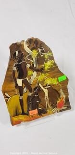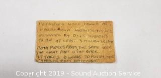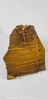 Item Description: 2 pieces of the petrified wood were found at Maramarua, North Island, New Zealand estimate by scientists to be at least 3 million years old. Both pieces are from the same tree. The white pieces are the bark. It takes 6 weeks to polish with the tumbler going night and day. Also comes with a jar of volcanic ash from Mount St. Helens eruption, a shark's took, quartz crystal and a piece of polished petrified wood hand painted with a tribal image, approx. 6" x 7".
