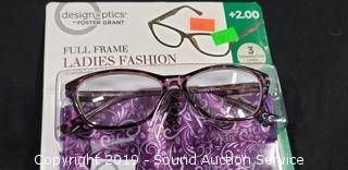 Lot #0149: Design Optics +2.0 Full Frame Ladies Glasses