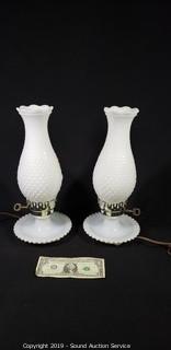 Lot #0319: Pair of Vtg. Hobnail Milk Glass Table Lamps
