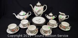 Item Description: By Rudolph Wachter. Includes teapot, coffee pot, cream, sugar, 6 cups, 6 saucers and 6 snack plates. Possibly some fading to the paint.