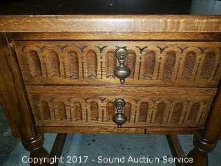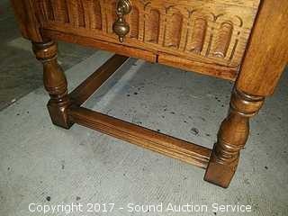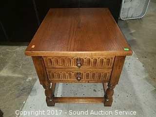 Lot #0072: Delwood Solid Tiger Wood Carved Side Table