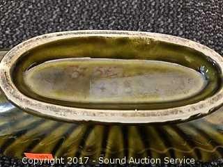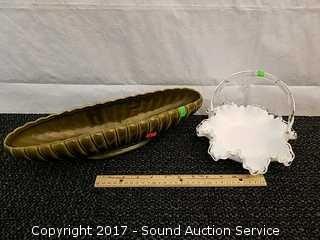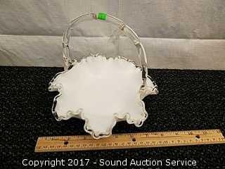 Lot #0082: Fenton Handled Basket & Pottery Planter