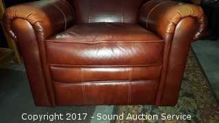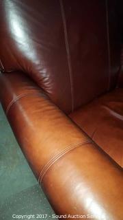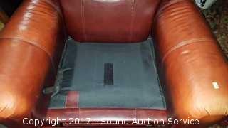Genuine leather. 20" wide seat. Approx. 38" tall, 36" wide.
