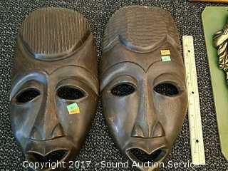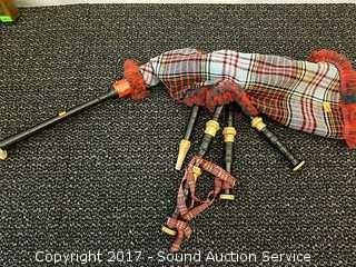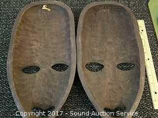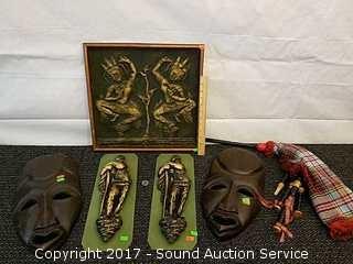 Lot #0089: Hand Carved Tribal Masks, Decor & Bagpipes