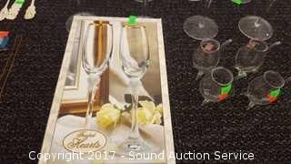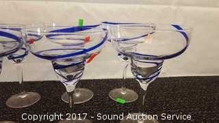 Includes: (4) unique shot glasses with straws, (8) art glass margarita glasses, and champagne glasses in box.