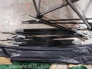 The poles on the tent are missing the elastic to hold them together & a screen window is torn.