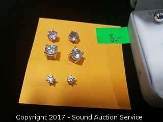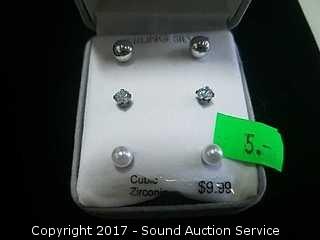 Lot #0005: Sterling Silver Earrings W/ CZ, Pearl & Amethyst