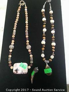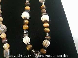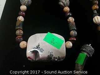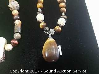 Lot #0003: Tigers Eye & Picture Jasper Necklaces & Pendant