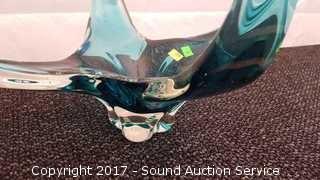 Lot #0091: Unique Art Glass Console Bowl & Vase