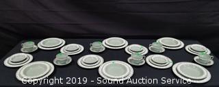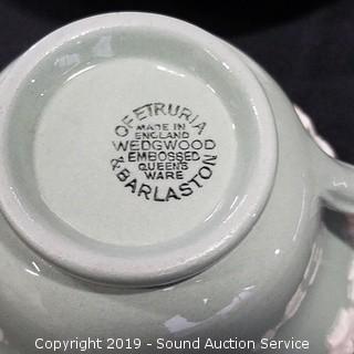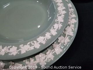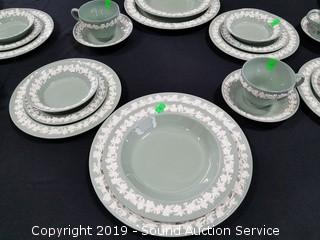 Lot #0006: 42pc Wedgwood Celadon Embossed Queensware Dish Set