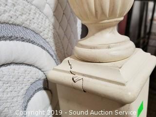 This auction consists of several consignments, Rare Wedgwood Dish Sets to Tools. Includes: Wedgwood Queensware Dish Sets, Wedgwood Crystal Stemware, Wrought Iron Patio Set, Beds, Oriental Ceramic Planters, NuTone Food Center Kitchen Island, Vtg. Heritage & Kindel Bedroom Furniture, Reproduction Shaker Cabinet/Hutch, Beautiful Armoire, Brand New Tools, Mechanics Sets, Wrenches, Ratchets, Beautiful Turquoise Tear Drop Glass Chandelier, Ornate Gold Gilded Mirrors, Vtg. Cameo's & Much More!