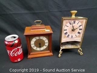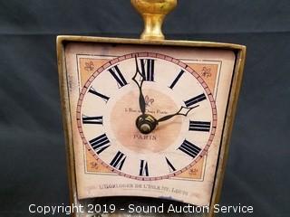 Item Description: The hands have come free on the Seth Thomas clock, unable to determine if it works, 8" x 5" x 3". Paris clock is battery powered, solid brass casing. 9" x 5" x 4".