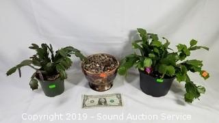 Lot #0403: 2 Potted Christmas Cactuses & Ceramic Planter
