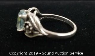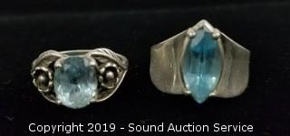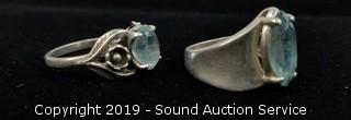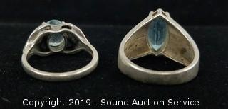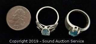 Lot #0111: 2 Sterling & Aquamarine? Rings S:9