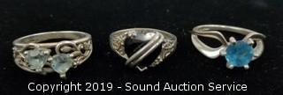 Lot #0119: 3 Sterling Semi-Precious Gemstone Set Rings S:8