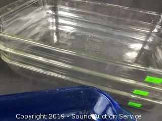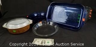 Item Description: 2 pie pans, covered casserole dish and 4 baking dishes. 9" x 22" x 2-1/4".