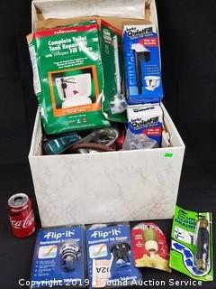 Lot #0228: Box Full of Various Plumbing Gadgets & Hardware