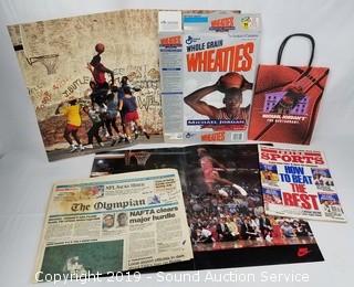 Item Description: Includes Michael Jordan's Restaurant Bag, Wheaties Box, Newspaper article with MJ's Dad & Photos.