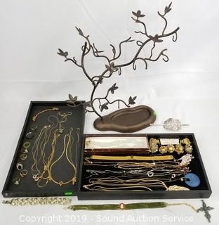 Lot #0103: Collection of Fashion Jewelry & Jewelry Stand