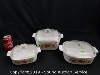 Lot #0064: Set of 3 Vegetable Pattern Corning Ware