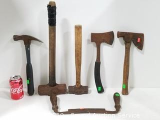 Lot #0077: Vtg. Draw Knife, Mallet, Hatchets & Hammers