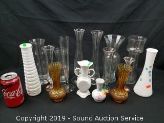 Item Description: 15 Stem Vases, and Pair of Vtg. Universal Food Choppers.